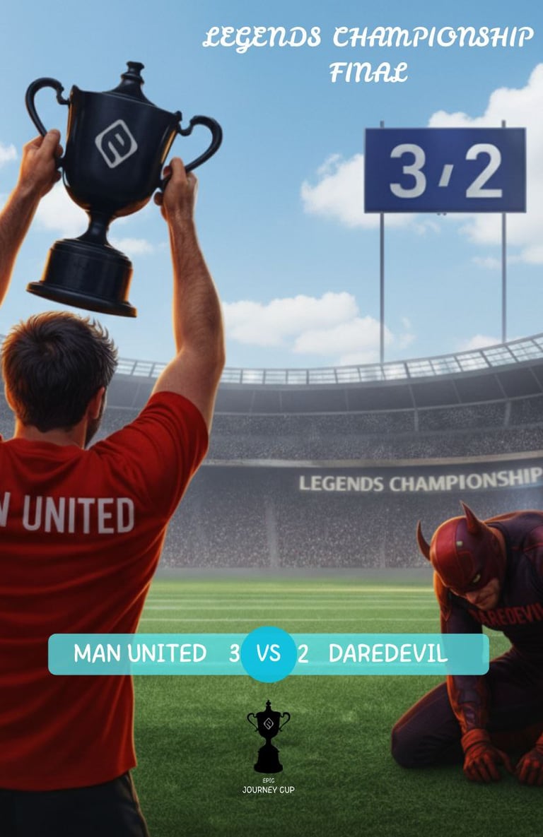 في يوم 18/7/2024 اتلعب اول نهائي في بطولاتنا بشكل عام و كان اللاعب (MAN UNITED) هو من حصدها بعد ما فاز على (DAREDEVIL) بنتيجة 3/2