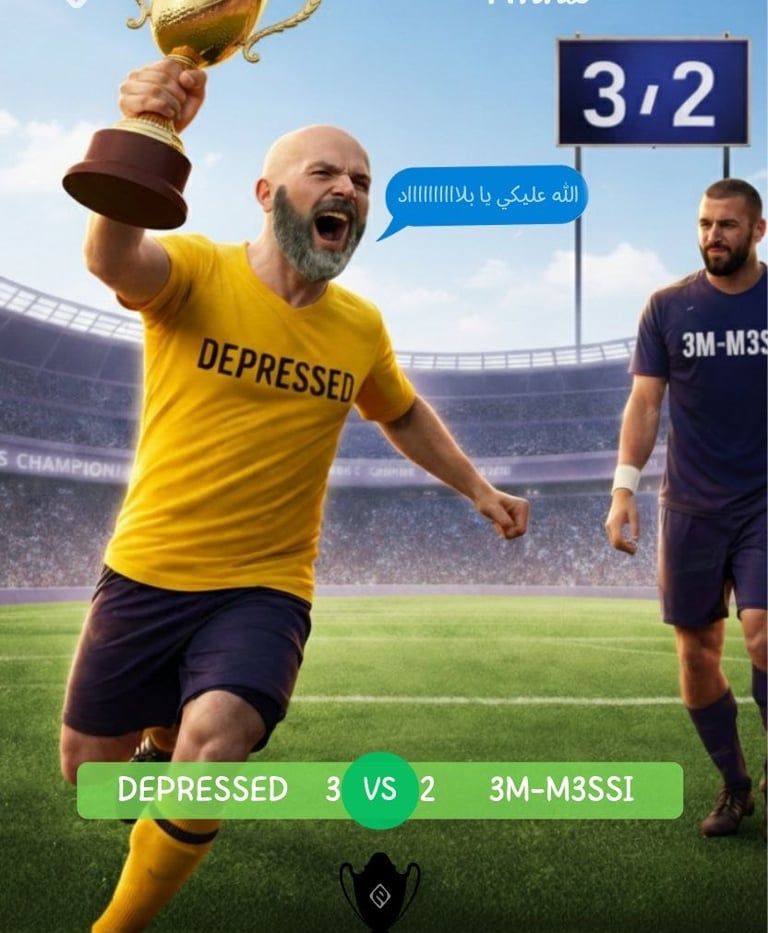 المهم المباراة دي كانت بتاريخ 25/7/2024 و انتهت بفوز DEPRESSED على فريق 3M-M3SSI بنتيجة 3/2 ( معرفش ايه حكاية النتيجة دي ) .